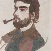 FRED YATES (BRITISH, 1922-2008) (2) — Self-portrait with pipe oil on board 47 x 30.5cm (unframed) together with an oil on board by the same hand of a crouching man in underpants, (unframed) (2) Proven…