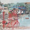 FRED YATES (BRITISH, 1922-2008) — The Beach Hut oil on board 37.5 x 42cm (unframed) Provenance The Estate of the Artist