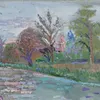 FRED YATES (BRITISH, 1922-2008) — A lush riverbank oil on board 24.5 x 32.5cm (unframed) Provenance The Estate of the Artist