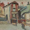 FRED YATES (BRITISH, 1922-2008) — Houses and Pot Plants oil on board 54.5 x 75.5cm (unframed) Provenance The Estate of the Artist