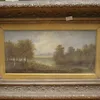 George Butler "River Landscape with trees" Oil On Canvas. Signed lower left. Set In heavy ornate Frame Aperture 7.5inch x 151/4 inch