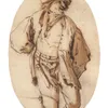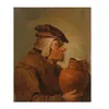 A peasant man holding an earthenware jug