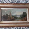 George Turner (style) Wooded landscape with church by a river, unsigned, oil on canvas, 19cm x 39.5cm