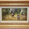 Gordon Ashley Hunter ( 20th century British) Red legged Partridge in wooded landscape. Oil on board, signed lower left. 11 x 22cm
