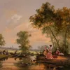 GUDRUN SIBBONS (GERMAN/BRITISH, 1925-2020) — Ladies watching fishermen on a river signed 'Gudrun Sibbons' (lower left) oil on canvas 41 x 51cm ARR Provenance Private collection, UK