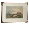 A watercolour of cattle in a landscape signed H Birtles dated 1866 in a gilt frame 49cm x 37cm. Some damage to frame but colours good.
