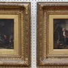 H Brocke. A monk asleep in a wine cellar. Oil on canvas, signed lower right. 20 x 15cm. Together with another work by the same hand
