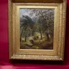 A 19t Century English school oil on canvas of a wooden country scene, signed H. Stanley?, in large period gilt frame, 49cm x 59cm.