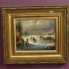 Hendrick Breedveld (Dutch School, 1918-1999) oil on board of people skating on a frozen river/lake, within later giltwood frame, 28cm x 22cm.