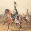 Henry Martens(British, 1790-1868)A mounted officer of the Yorkshire Hussars, circa 1840, with a trumpeter and a line of troopers of the regiment behind