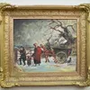 J Smythe (19th century), Winter scene with figures and a cart, oil on board, approx. 31cm x 37.5cm, signed lower left, in gilt frame.