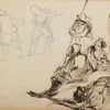 James Crawford Wintour RSA RSW (Scottish, 1825-1882) Figures by fishing pots pen and ink sketch, 15.5 x 21.5cm labels verso, framed and glazed the labels read: Sale of Wintour's effects / purchased a