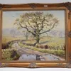 A 20th Century oil on canvas by James D Preston of a country scene along with an oil on board by Canadian artist Ronald Davies of a moose near Key stream, both signed and framed.