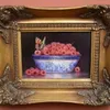 James J Allen (20th century), oil on board titled "Norfolk Raspberries", signed lower right, titled verso, in modern gilt frame, oil approx. 16.7cm x 11.3cm.