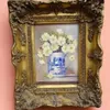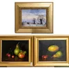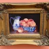 James J Allen (20th century), oil on board titled "The Peach Bowl", signed lower left, titled verso, in modern gilt frame, oil approx. 16.7cm x 11.5cm.