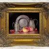 JAMES J ALLEN (BRITISH, CONTEMPORARY) "Pewter and Peaches" signed lower left, oil on board 11.5cm x 16cm (4.5in x 6.5in)