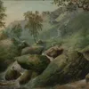 . Preston (19th Century) Rocky waterfall amid...