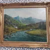 John Clare River landscape with farmstead, snow capped mountains beyond, signed lower right, oil on artist's board 39.5cm x 49.5cm and Enberby extensive river landscape with farm and mountains beyond,…