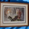 Two John Rudkin signed prints of Derbyshire scenes to include plague cottages of Eyam, Longstone and a signed print of tawny owl by Dorathea Buxton Hyde.
