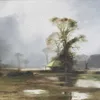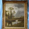 20th Century English school oil on canvas by John Trickett "Silent stream", 75cm x 60cm, in large gilt frame.