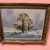 20th Century English school oil on canvas by John Trickett, signed bottom left, titles "Bleak midwinter". 60cm x 75cm, in large gilt frame.