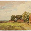 JOSEPH POWELL (BRITISH, 1876-1981) (3) — Haystack with farm buildings beyond signed 'JOSEPH POWELL' (lower right) watercolour 38.5 x 56cm together with Cornstooks drying; and Village buildings with ch…