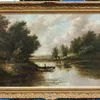 Joseph Thors (1843-1898) Dusk river scene with fisherman in boat oil on canvas, approx. 73cm x 48cm signed lower left, framed, old reference/stock number stencilled on stretcher. [1]