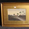 A Pre WW1 Watercolour of a country lane with a bramble bush in the foreground Trees and cottages in the distance. Beautifully painted with a slight impressionistic quality. Signed Keates 1911 lower.