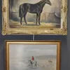 Kenneth Ansell (20th century) Huntsmen and hounds in a landscape, oil on canvas, signed lower right, 40 x 50cm, together with a study of a bay horse in a stable interior, signed Roy Beddington, oil on…