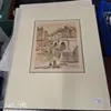 Six unframed prints and etchings to include M.E Ridinger standing stag; 20th century etching, Temple Bar and four other unframed pictures