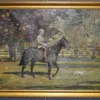 Molly Maurice Latham ( British 1900-1987) A boy riding a black pony, accompanied by a terrier, in an autumnal paddock. Oil on canvas, signed and dated '46 lower left, 52.5 x 67cm