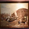C1982 oil on canvas "Out of St Pancras" by P.O Jones railway view, signed bottom right, 89cm x 74cm.