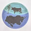 Pablo Picasso (Spanish 1881-1973), Toros a Madoura pottery plate, turquoise and blue with two bulls resting, impressed marks, etched Edition Picasso, diameter 20cm.Provenance: Gifted by Picasso to the…