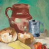 Patrick George(British, 1923-2016)Still life with jug, bread and tomatoes