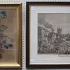 Paul Sandby (1731-1809) A view of Worcester. An engraving, published by The Artist, 1778. 32 x 50cm, together with a 20th century felt-work floral still life panel, 40 x 40cm