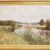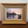 Peter Barker RSMA (British born 1954). Oil on board - "Sunrise by the Welland" in a gilt frame, frame size 56cm by 46cm