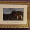A 19th Century oil on paper of a Scotsman smoking a clay pipe accompanied by dogs and horses, with faint inscription stating, 'Pnl Sketch Painted by HRH queen Victoria & _______ to Lady _______, 1873'…