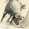 Raoul Millais (1901-1999) A charging bull...