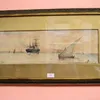 A 19th Century English school watercolour of ships and boats on sea, signed Albert, in glazed gilt frame, 54cm x 18cm.