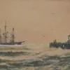 Thomas Bush Hardy ( 1842-1897) Rowing tenders and other shipping in choppy seas. Watercolour, signed lower left, 19 x 26cm, together with a pair of barges at dusk. Signed H E Dickson, dated 1917, 17x
