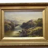 A 19th century oil on canvas of a river scene with foliage to either side, signed to lower right Tom [...] in gilt plaster and wood frame.