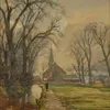 TOM SCOTT R.S.A. (SCOTTISH 1854-1927)AFTER THE SERVICE, ETTRICK KIRK