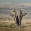 Tony Forrest - " Elephant Ambrosseli " Original Large Oil on canvas. Circa 2000. Gilt framed. A detailed and impressive painting of a bull Elephant on the savannah grasslands. Signed lower left. Wit