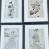 Four framed Japanese Edo period woodblock prints , 36cm x 24cm (each)