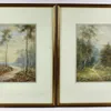 A Pair of watercolours of wooded landscapes by W. Duncan, framed H49.5cm x W38cm, together with a framed picture of a rural cottage with children playing outside H39cm x W43cm and a framed oil on pane…