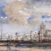 Framed Watercolour of a Young Girl by Buildings. Schofield 1888 Label verso Walter Elmer Schofield (see picture). Image size: 22 x 30 approx. Frame size: 44 x 54 cms approx. Condition: Good