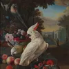 WILLEM VAN ROYEN (DUTCH 1672-1742)A STILL LIFE OF PARROTS AND FRUIT IN A LANDSCAPE