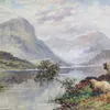 William Langley, oil on canvas: Flock Of Sheep In Landscape Sunset, signed lower right. 62cm x 88cm