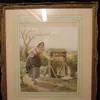 William Lucas (1840-1895) Woman drawing water from a well, signed and date W. Lucas 1875, lower left, watercolour heightened in white, 46cm x 37cm condition: darker band at top of picture requiring cl…