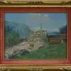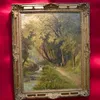 Late 19th Century oil on board of a countryside scene, unsigned, framed and glazed, 38 x 56cms approx, along with oil on board of the Alps, c1905, signed, framed and glazed, 37 x 55cms approx